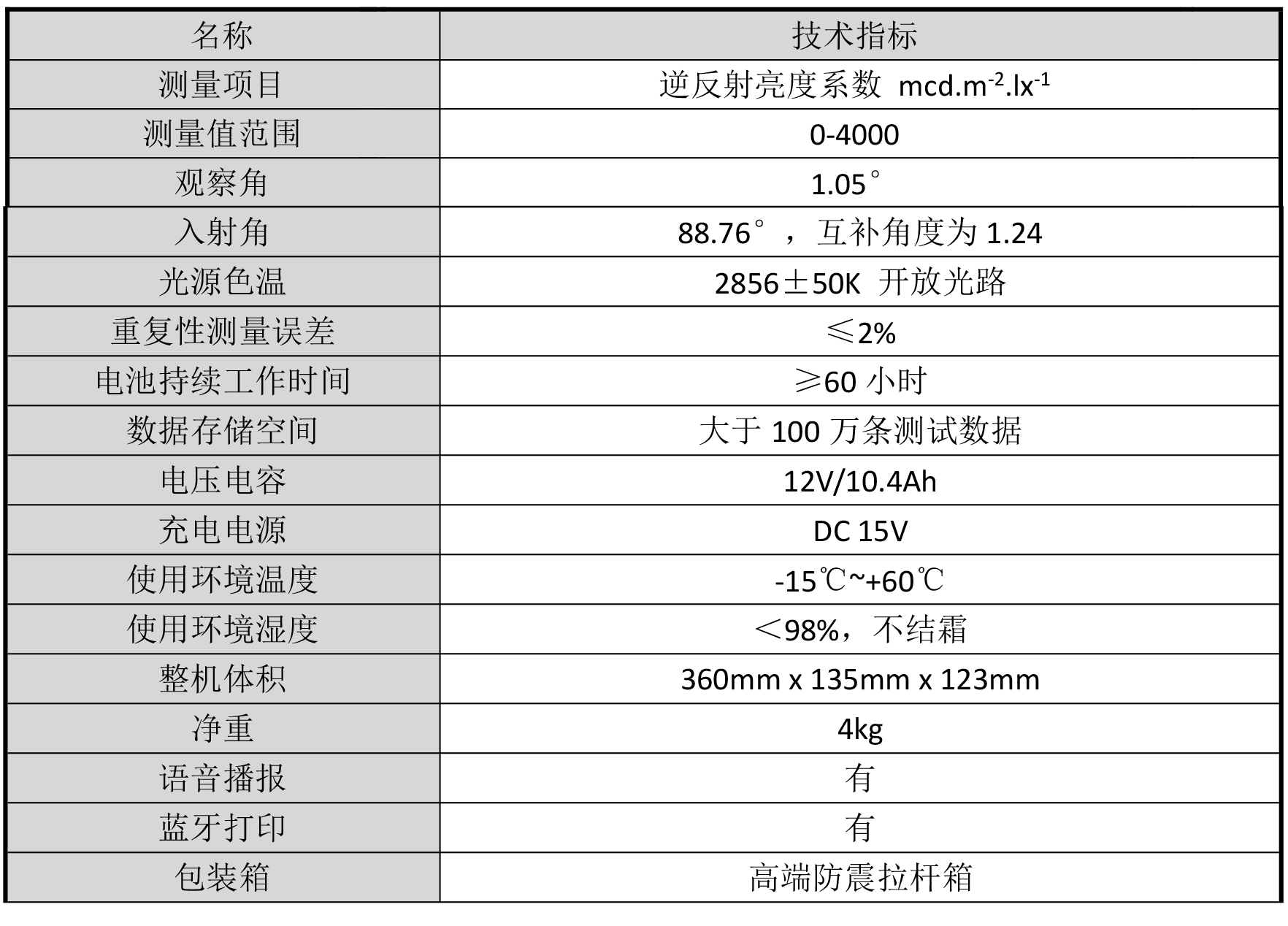 ● 快速測量(1.5秒內(nèi)測出逆反射亮度系數(shù)值);